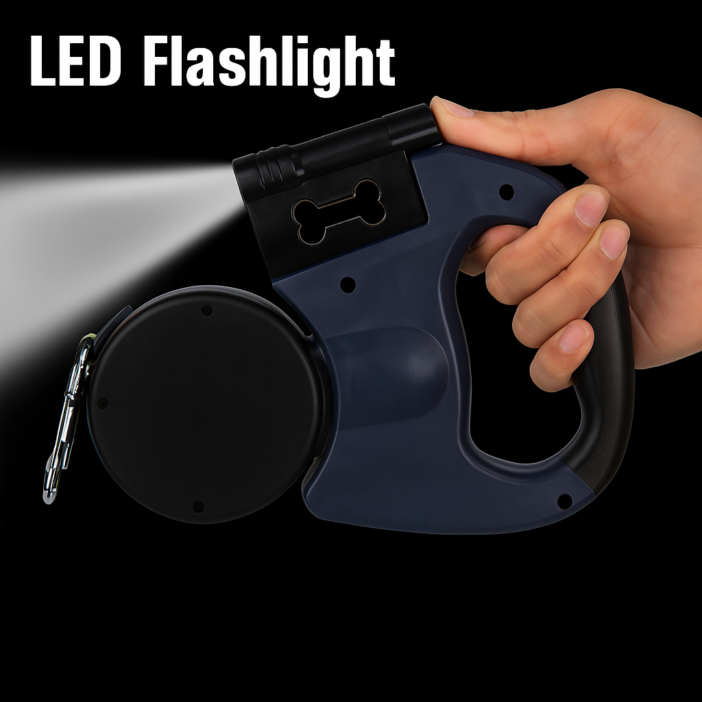 With built-in LED flashlight lighting, you’ll feel secure during nighttime walks, while the poop bag storage slot adds unmatched convenience. Each leash has independent button controls, giving you full command over both dogs. Available in black, red, and blue, this reflective leash is the ultimate pet walking solution for safety, comfort, and control.